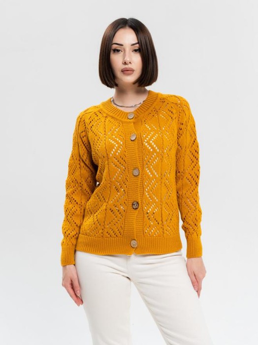 Совместные покупки Каменск-Уральский Женская одежда Кофты, кардиганы — ESENIA Кардиган женский ажурный Весна - Горчица