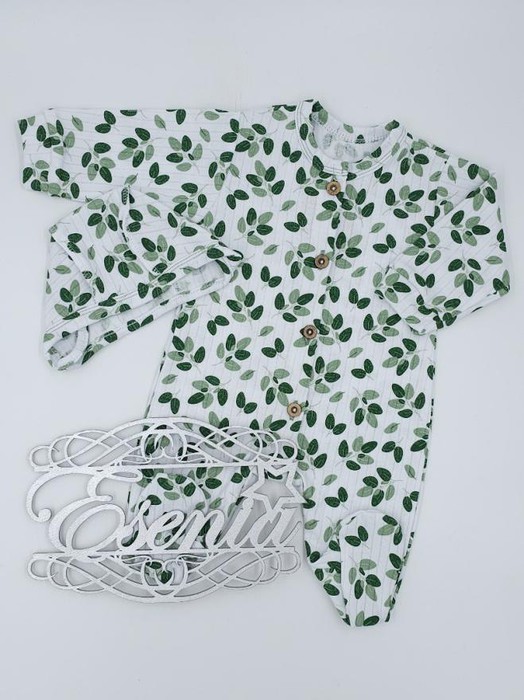 ESENIA Комплект для малышей из 100% хлопка (комбинезон+Шапочка) №3 с листиками