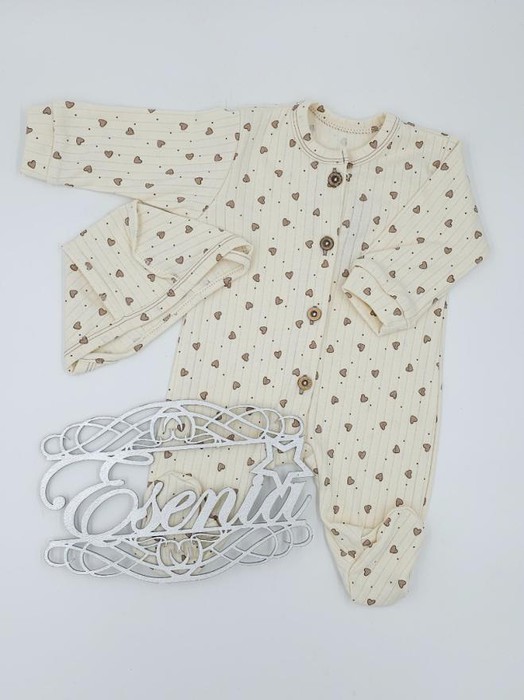 ESENIA Комплект для малышей из 100% хлопка (комбинезон+Шапочка) №1 с сердечками