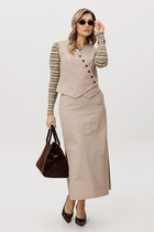 Модель юбки прямая, длинная, внизу сзади небольшой разрез (картинку можно посмотреть на сайте производителя)
