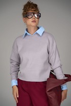 Vilatte Джемпер тонкой вязки из хлопка с нейлоном D39.354 серый меланж