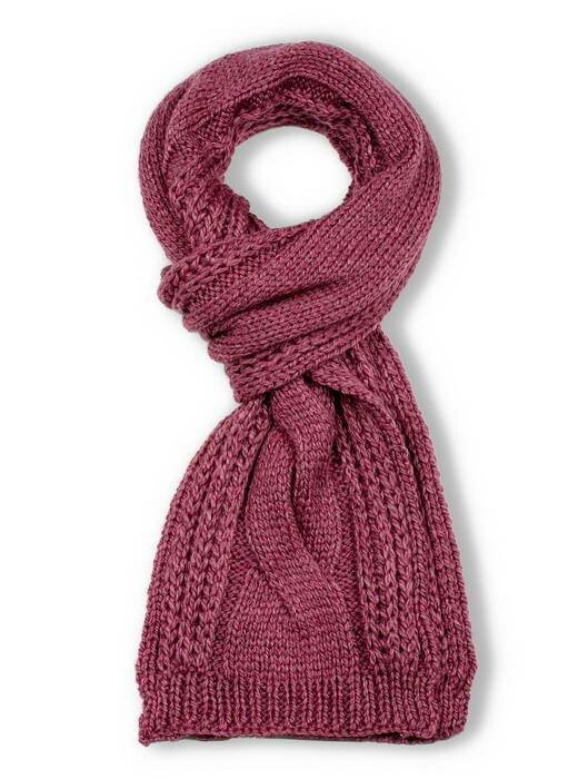 Шарф женский трикотажный одинарный, с заработанными краями. шарф связан грубой вязкой, иммитирующей ручное вязание.
