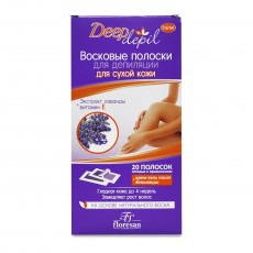Производитель: Флоресан ООО, Россия Восковые полоски для депиляции сухой кожи с лавандой Формула: 486 Восковые полоски с ароматом лаванды идеально подходят для быстрого и эффективного удаления нежелательных волосков. Они просты в использовании и сделают Вашу кожу гладкой и шелковистой надолго. Благодаря воску Стрейч-эластик, который идеально повторяет форму тела и учитывает все детали рельефа кожи, стало возможным удалять волосы разной длины, включая самые короткие. Специальная ткань лишена эластичности, что дает возможность делать короткое резкое движение при отрыве полоски, предотвращая болезненные ощущения. Входящий в состав воска экстракт лаванды оказывает увлажняющее и смягчающее действие. Объем: 20 полосок