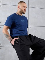 Футболка мужская из меланжированного трикотажного полотна "кулирка", свободного покроя, со спущенным плечом и втачными короткими рукавами. Горловина овальной формы обработана втачной планкой. По шву втачивания планки настрочена двойная отделочная строчка. В центре переда - принт, выплненный в технике шелкографии.