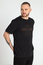 Футболка мужская из гладкокрашеного трикотажного полотна "кулирка" с лайкрой, классическогоь покроя, с коротким втачными рукавами, горловиной овальной формы, обработанной втачной планкой и принтом на полочке, выполненным в технике шелкографии.