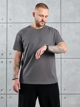 Футболка мужская из трикотажного полотна "кулирка-варенка", с короткими рукавами покроя "реглан", горловиной овальной формы, обработанной втачной планкой, и принтом в центре детали переда, выполненным в технике шелкографии. По швам реглана и горловине настрочены отделочные строчки.