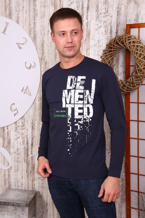 Футболка мужская с длинным втачным рукавом на манжете. Данная модель выполнена из трикотажного полотна кулирка с лайкрой. Горловина обработана основной тканью, на полочке присутствует принт. Отлично подходит для прогулок и отдыха. Может быть парой детской футболке 15058; продается отдельно