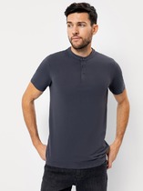 Мужская футболка из кулирки. Горловина с V-образным вырезом с отделкой другой тканью и пуговицами, на груди небольшой принт, короткие рукава, прямой силуэт. Четыре расцветки — белая, васильковая, темно-синяя и серый меланж. Размеры от 46 до 54. Возможна розница.