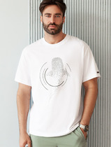 Футболка с круглым вырезом горловины свободного силуэта и со спущенной линией плеча. Модель декорирована тематическим принтом. Футболка удачно сочетается с любыми поясными изделиями данной коллекции, а так же с брюками и шортами Almando Melado.