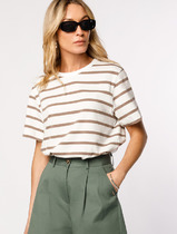 Футболка прямого свободного кроя, выполнена из хлопкового полотна розового цвета. Характеристики: прямой свободный крой, горловина овальная, рукав слегка спущен, горловина и край рукава выполнены из довяза, по передней части изделия слева декоративная объемная печать "Annete". Длина по центру спинки 69 см, длина рукава 18 см.
