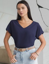 Vilatte Футболка с V-вырезом и цельнокроеным рукавом из премиального хлопка D49.