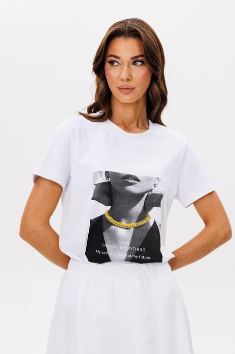 Базовые футболки - это конечно хорошо, но что делать, если хочется привнести в образ яркости, иронии и немного артистизма? Лучший способ выразить себя - выбрать вариант с классным говорящим принтом. Футболка классического кроя с втачным рукавом. Длина футболки около 60 см. Длина рукава около 15 см.