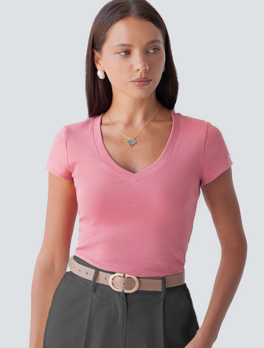 Состав: 95%Хлопок 5%ПУ Плотность: 210 Г/м2Облегающая футболка с V-образным вырезом оттенка "туманная роза" создаст утонченный образ. Идеальная базовая модель для вашего гардероба! Глубокий V-образный вырез подчеркивает линию шеи и зрительно удлиняет силуэт. Футболка выполнена из хлопка с добавлением эластана, которая мягко облегает контуры тела, подчеркивая достоинства фигуры. Универсальный вариант для создания стильных повседневных образов.