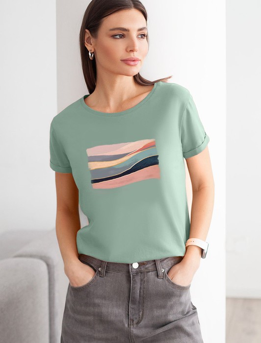 Состав: 92%Хлопок 8%ПУ Параметры модели на первом фото: Рост 170, бюст 89, талия 63, бедра 92 Размер товара на первом фото: 42Футболка выполнена из премиального хлопка с эластаном. Авторский принт нанесен красками с устойчивым покрытием. Модель среднего объема дополнена подворотами на рукавах. Легко впишется в повседневные аутфиты и добавит акцента в образы. Изделие дополнено металлическим логотипом бренда.