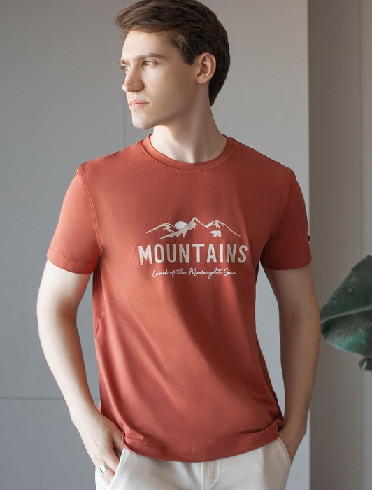 Состав: 92%Хлопок 8%ПУ Плотность: 170 Г/м2 Параметры модели на первом фото: Рост 190, бюст 108, талия 87, бедра 104 Размер товара на первом фото: 54Перевод принта: Mountains, land of the midnight sun - горы - страна полуночного солнца. Футболка выполнена из премиального хлопка с эластаном. Авторский принт нанесен фактурными красками с устойчивым покрытием. Изделие комфортно сидит по фигуре, не сковывая движений. За счет среднего объема, хорошо подойдет как первый слой под пиджак, кардиган или бомбер. На рукаве нашивка из эко-кожи с логотипом бренда.