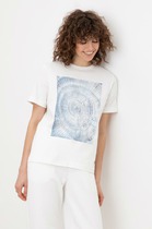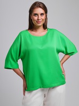 Футболка женская из г/к вискозного полотна со спущенным плечом. Проймы обработаны узкой притачной планкой, горловина - узкой бейкой из основной ткани.