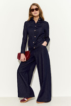 Vilatte Джинсы-трубы из эластичного денима на флисе D54.157 темно-синий