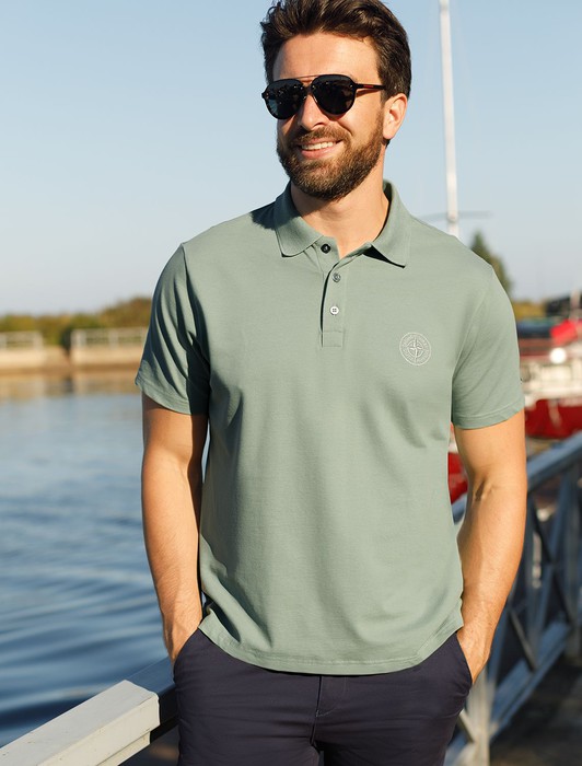 Состав: 92%Хлопок 8%ПУ Параметры модели на первом фото: Рост 190, бюст 108, талия 87, бедра 104 Размер товара на первом фото: 54Футболка-поло выполнена из фактурного трикотажа. Модель с прямого кроя с небольшими разрезами по бокам дополнена вязаным воротником вышивкой с компасом. Премиальный хлопковый трикотаж гарантирует комфорт и износостойкость. На рукаве брендированная металлическая нашивка.