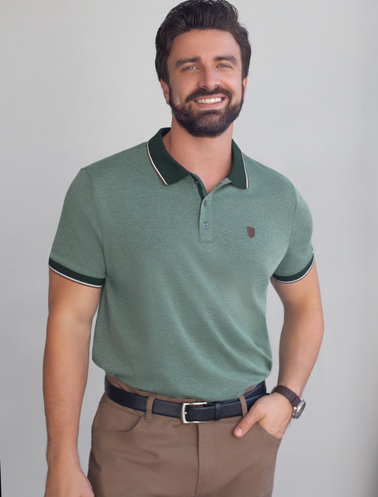 Совместные покупки Каменск-Уральский Мужская одежда Джемперы, свитеры — Футболка поло с воротником на пуговицах из полотна пике с меланжевым плетением с