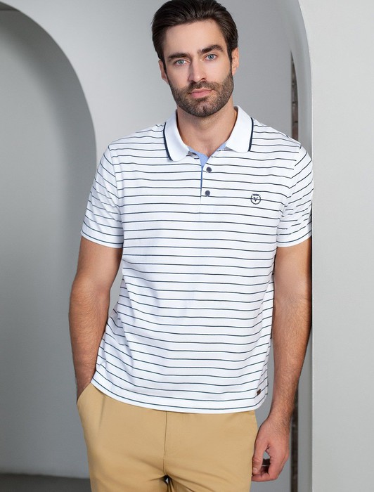 Совместные покупки Каменск-Уральский Мужская одежда Футболки — Футболка поло в полоску из премиального хлопка с эластаном