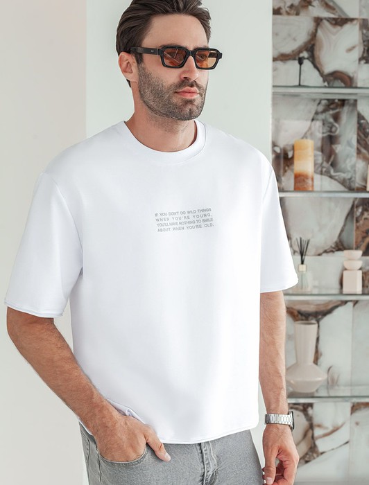 Состав: 100%Хлопок Параметры модели на первом фото: Рост 190, бюст 108, талия 87, бедра 104Футболка с трендовыми открытыми срезами выполнена из тонкого футера. Изделие урашено авторским принтом с устойчивым покрытием и логотипом бренда из эко-кожи. Мягкая хлопковая ткань очень приятная к коже, в которой будет комфортно на протяжении всего дня. Модель сочетается в костюме с шортами U48.001