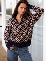 Джемпер с воротом на молнии жаккардовой вязки с кашемиром