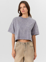 Футболка молодежная из гладкокрашенного полотна «кулирка с лайкрой», свободного покроя, со спущенной линией плеча, втачными рукавами длиной до локтя, горловиной овальной формы, обработанной втачной планкой. Изделие дополнено декоративной нашивкой, в боковых швах выполнены разрезы.