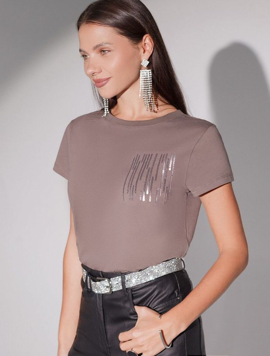 Футболка Vilatte D49.135 кофейный_блестки