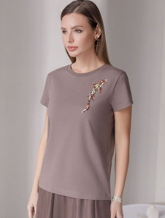 Эта нарядная футболка подходит для создания образа на каждый день и идеально подойдет на выход. Модель не мнется, что делает ее практичным вариантом для активных женщин, которые ценят стиль и удобство.