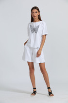 Vilatte Нарядная футболка с принтом фольгой из премиального хлопка с эластаном D