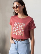 Модная футболка темно-кораллового цвета привлекает внимание своим интересным дизайном и ярким принтом. Благодаря прямому крою изделие комфортно садится на любую фигуру, в том числе на большие размеры, и не сковывает движений. Круглый вырез подчеркивает современный стиль, а натуральный материал из хлопка с добавлением эластана обеспечивает удобство в повседневной носке и приятные тактильные ощущения. Прочность и износостойкая структура сохраняет первоначальную форму футболки после множества стирок. Рукава имеют аккуратные подгибы, что придает изделию завершенность и помогает сохранять аккуратный внешний вид. Принт в виде бликов нанесен золотистыми красками с устойчивым покрытием. Стильная футболка гармонично вписывается в любой гардероб и подойдет для прогулок, отдыха дома или неформальных встреч. Благодаря особенностям кроя модель хорошо сидит, скрывая недостатки и подчеркивая достоинства. Удобная футболка идеально сочетается с базовыми вещами, позволяя создавать новые интересные образы каждый день