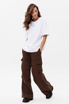 Футболка женская из гладкокрашенного трикотажного полотна «кулирка», свободного силуэта, с боковыми швами, переходящими в рельефы, в правом соединительном шве выполнен разрез. Горловина овальной формы обработана втачной планкой и дополнена декоративным элементом.