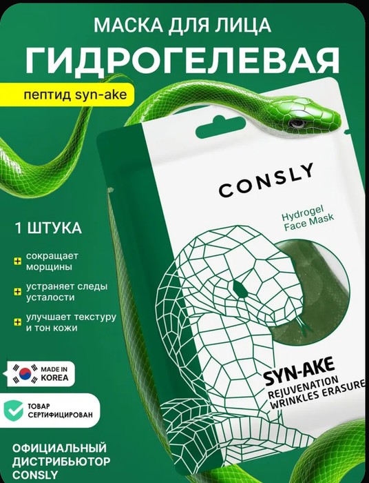 Совместные покупки Каменск-Уральский Косметика и парфюмерия Маски для лица — Гидрогелевая маска для лица с пептидом Syn-Ake Consly
