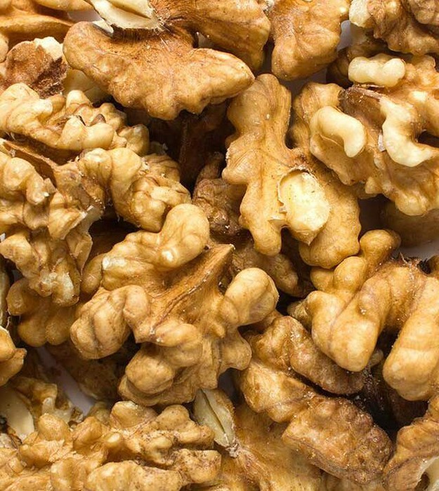 Грецкий орех именуют еще и царским орехом. Орех грецкий- это наиболее полезный и питательный орех. На что похожи ядра грецкого ореха? Правильно- на человеческий мозг. Грецкий орех помогает в работе нашего мозга. Одним из известных свойств грецкого ореха очищенного является улучшение памяти, а также оказывает успокаивающее воздействие на нервную систему.Грецкий орех половинки может принести большую пользу для организма при правильном его употреблении. Продукт содержат железо, что может решить проблему с анемией. Также орехи очищенные содержит белок- это помогает восполнить белок веганам и людям во время поста. Грецкий орех очень полезен для волос благодаря содержанию в них Омега-3. Всего 4-7 орехов грецких очищенных содержат 2,5 грамма Омеги-3. Грецкие орехи очищенные содержат такие витамины как: витамины группы В, витамин Е, С, К. Также минеральные вещества: кремний, бор, никель, медь, марганец, фосфор, магний, железо, цинк, калий, кальций и полунасыщенные и моно насыщенные жиры. Отмечено их положительное влияние на уровень инсулина, благодаря этому они показаны при диабете 2 типа. Учёные подтверждают, что 2-3 порции этих плодов в день снижают холестерин в организме. Ядра ореха уменьшает воспалительные процессы в организме, укрепляет кости и суставы, улучшают работу кишечника.