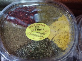 СОСТАВ ПРИПРАВЫ: Имеретинский шафран, сухая аджика, сбор сухой зелени, уцхо-сунели, паприка, пажитник, чеснок, соль поваренная, кориандр.