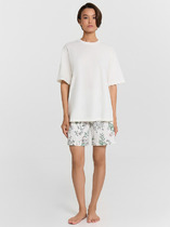 Халат женский из набивного кулирного полотна, приталенный силуэт. Горловина круглая обработана обтачкой, без рукава. На полочке и спинке рельефы с подрезами на сборке, в боковых швах внутренние карманы, низ изделия обработан на плоскошовной машине, застежка на петли-пуговицы.