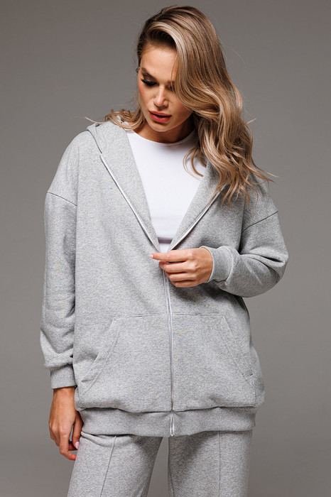 Удлиненное женское оверсайз худи с металлической застежкой-молнией составит отличную комбинацию для любого образа.