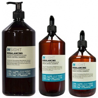 Шампунь для контроля жирной кожи головы "Rebalancing" содержит в своем составе органическое Масло Зеленого Чая + Экстракты Березы, Грейпфрута и Лаванды.