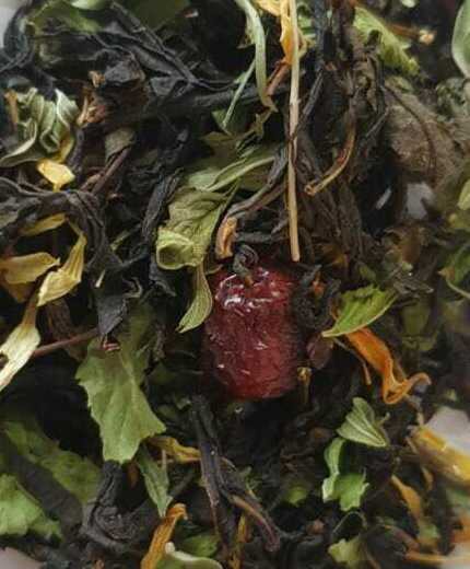 Традиционный ферментированный иван-чай с добавлением мяты, чабреца, шалфея, шиповника и листьев календулы. Содержит пищевые ароматические масла.