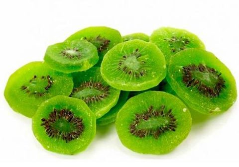 Сушёные плоды киви не утрачивают качества свежих, а наоборот содержание многих веществ находятся в более концентрированном виде. В состав входят углеводы – 85 г, пищевые волокна – 5,2 г, моно- и дисахариды – 67 г, белки – 0,8 г, жиры практически отсутствуют – 0,3 г. Имеется богатый минеральный состав – 18 элементов, где преобладает калий – 300 мг. Витамины: РР, А, В1, В2, В6, В9, С, Е, бета-каротин. В наличии фенолокислоты, лейкоантоцианы, кахетины, энзимы, пектины.