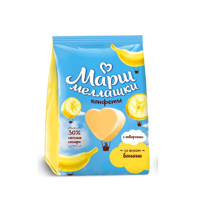 Мягкие нежные неглазированные конфеты с творогом, ароматом банана и пониженным содержанием сахара. Можно есть с чаем вприкуску и добавлять в кофе или какао. Созданы для любителей побаловать себя легкими десертами без вреда для здоровья.