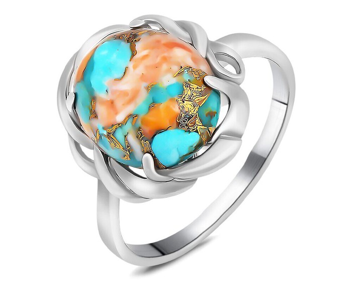 Кольцо, бирюза устричная голубая, СПН4026