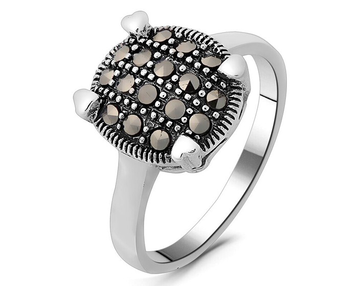 Вес: 3.84 г Вставка: Марказит Цвет камня: Серый Производство: Таиланд Покрытие: Оксидирование Размер колец: 171818.51919.5 Количество: 12Кольцо, арт.656403 Серебро Серебро 875, р. 17, 3,84 гр., марказит