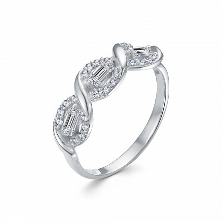 Кольцо с фианитом родированное серебро 925*