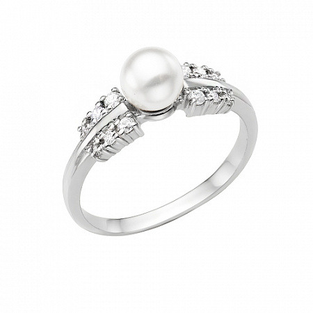 Кольцо с иск.жемчугом родированное серебро 925*