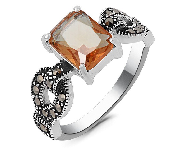 Кольцо, султанит ситалл , марказит, SL-AGA1788