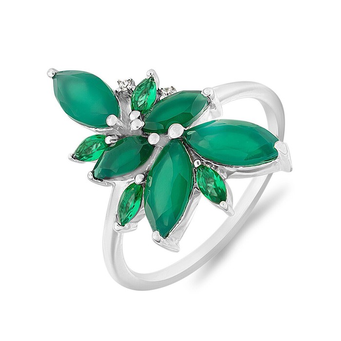 Кольцо, арт.654056 Серебро Серебро 925, р. 17.5, 2,76 гр., зеленый агат , наноизумруд