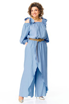 Комбинезон женский, отрезной по линии талии. Верхняя часть с рельефами по переду и вытачками по спинке, что обеспечивает стройность фигуры. Воротник стояче-отложной. Застежка на запах с петлями, пуговицами и потайной магнитной кнопкой обеспечивает практичность и легкость в использовании. Рукав втачной, короткий. Нижняя часть комбинезона оформлена складками и имитацией запаха, что добавляет модели свободы движений. В боковых швах расположены карманы. По спинке на уровне талии есть резинка для хорошей фиксации. Этот комбинезон идеально подходит для повседневной носки и разнообразных образов, сочетая модный стиль, комфорт и практичность.
