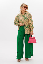 Детали: рубашка прямого силуэта, свободный покрой, рубашечный воротник, застежка на петли и пуговицы, перед с накладными карманами, спинка с кокеткой, рукава длинные с манжетами. Баска с фигурным низом и застежкой-шнуровкой, на подкладке. Застежка-шнуровка позволяет идеально подогнать баску по фигуре и носить её любой стороной.