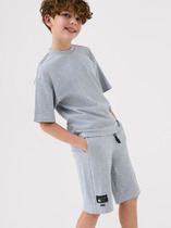 Легкий детский хлопковый костюм для мальчика. Рубашка прямого кроя с коротким рукавом и застежкой на кнопки. Классический воротник, накладные карманы. Свободные шорты на резинке со шнурком для регулировки. Удобные боковые карманы и карманы-карго.